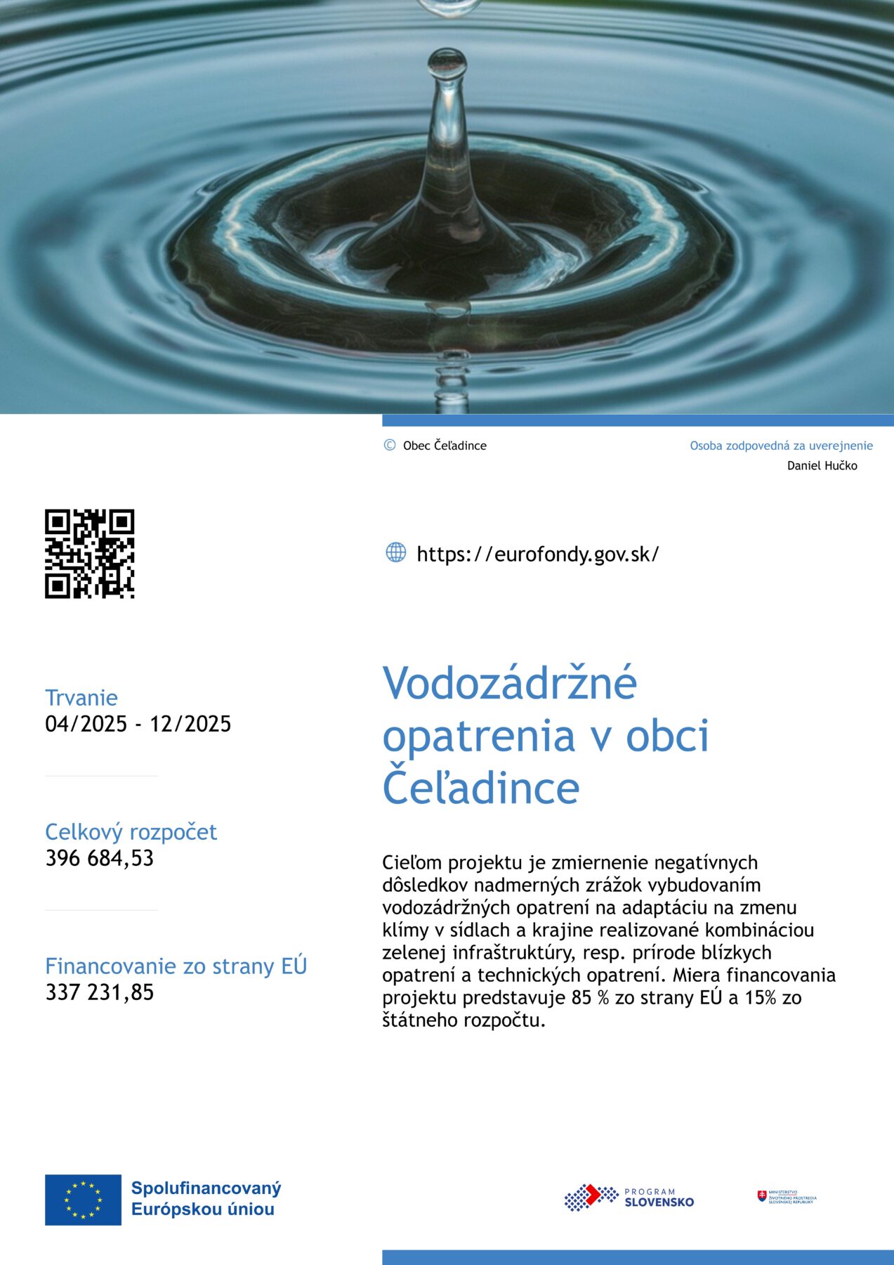 projektu predstavuje 85 % zo strany EÚ a 15% zo